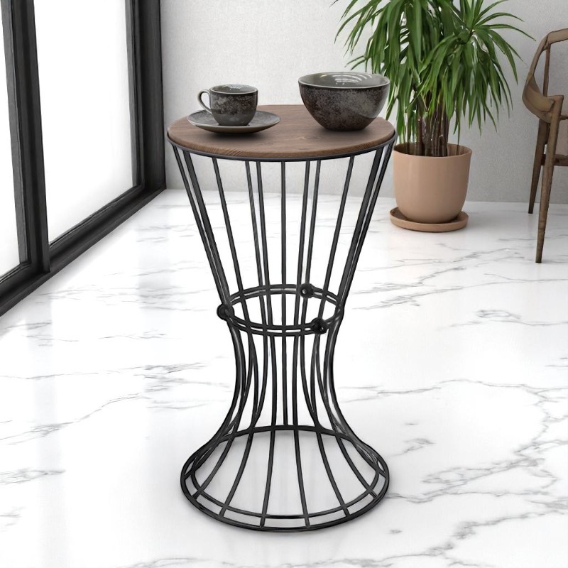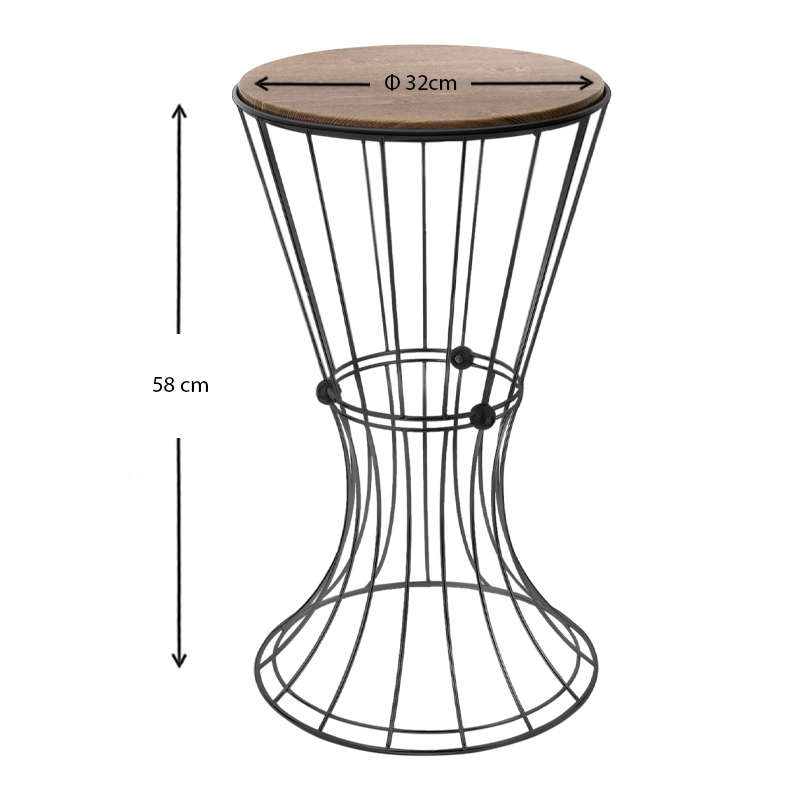 Βοηθητικό τραπεζάκι Girene μεταλλικό - Mdf χρώμα μαύρο - καρυδί 32x32x58εκ.