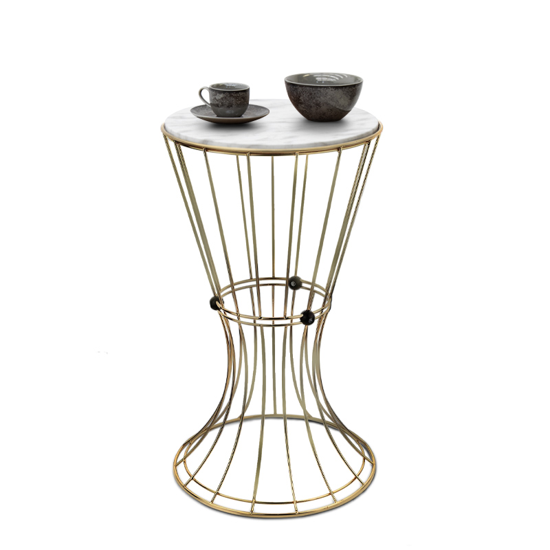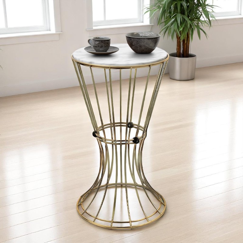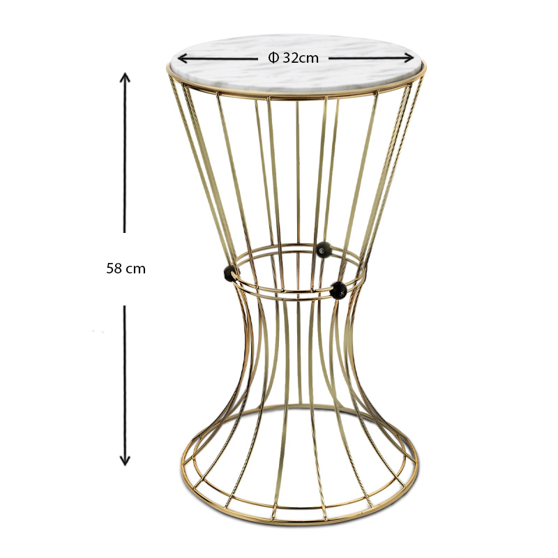 Βοηθητικό τραπεζάκι Girene μεταλλικό - Mdf χρώμα χρυσό - λευκό εφέ μαρμάρου 32x32x58εκ.