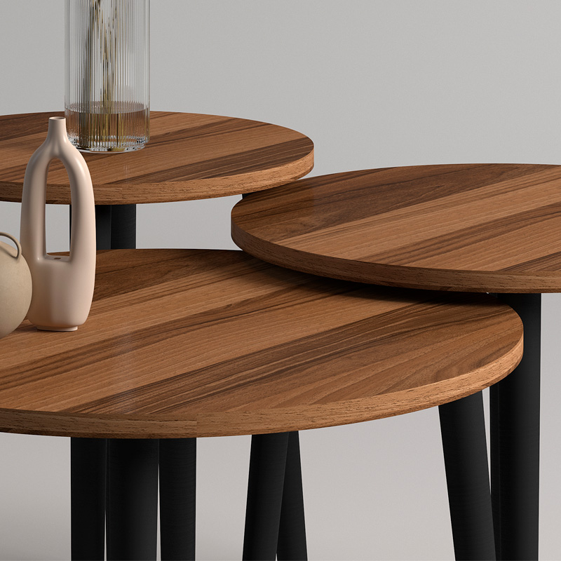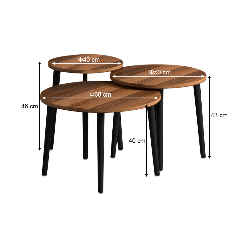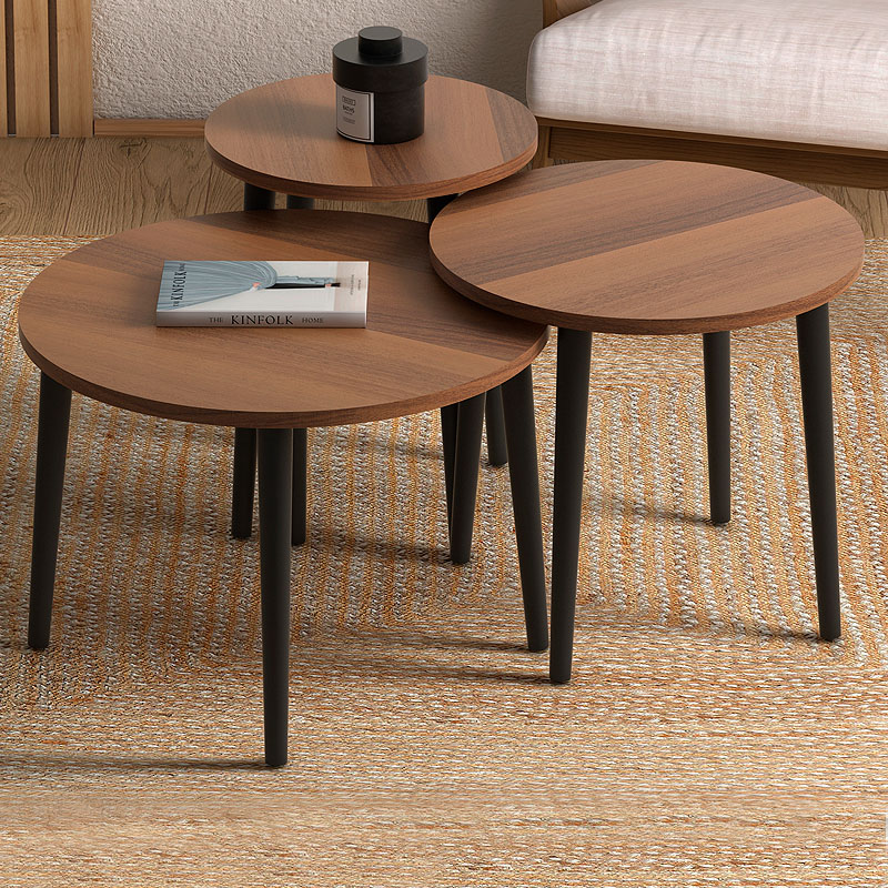 Τραπεζάκι σαλονιού σετ 3 τμχ Roma χρώμα καρυδί Φ60x46εκ.