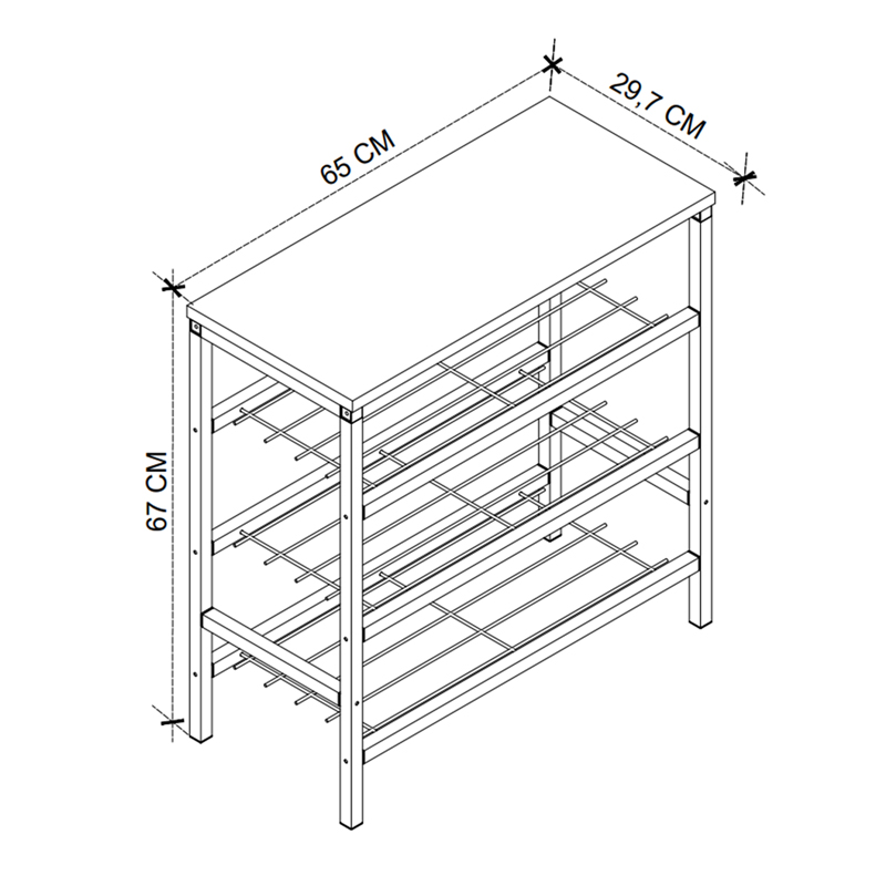 Παπουτσοθήκη Dalia 9 ζευγών μεταλλική - μελαμίνης χρώμα μαύρο - pine oak 65x30x67εκ.