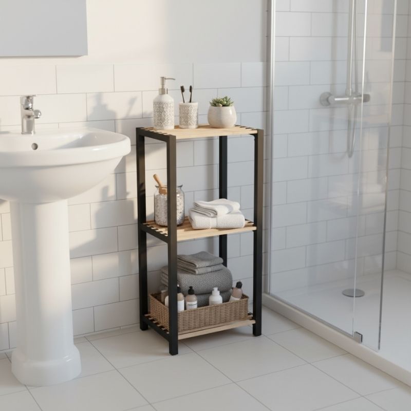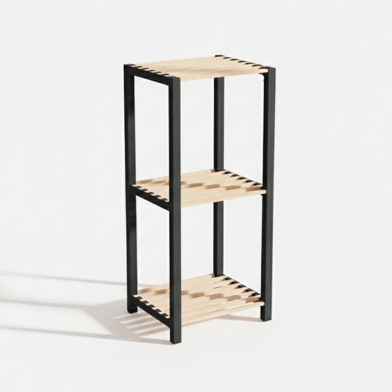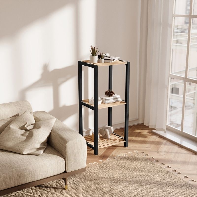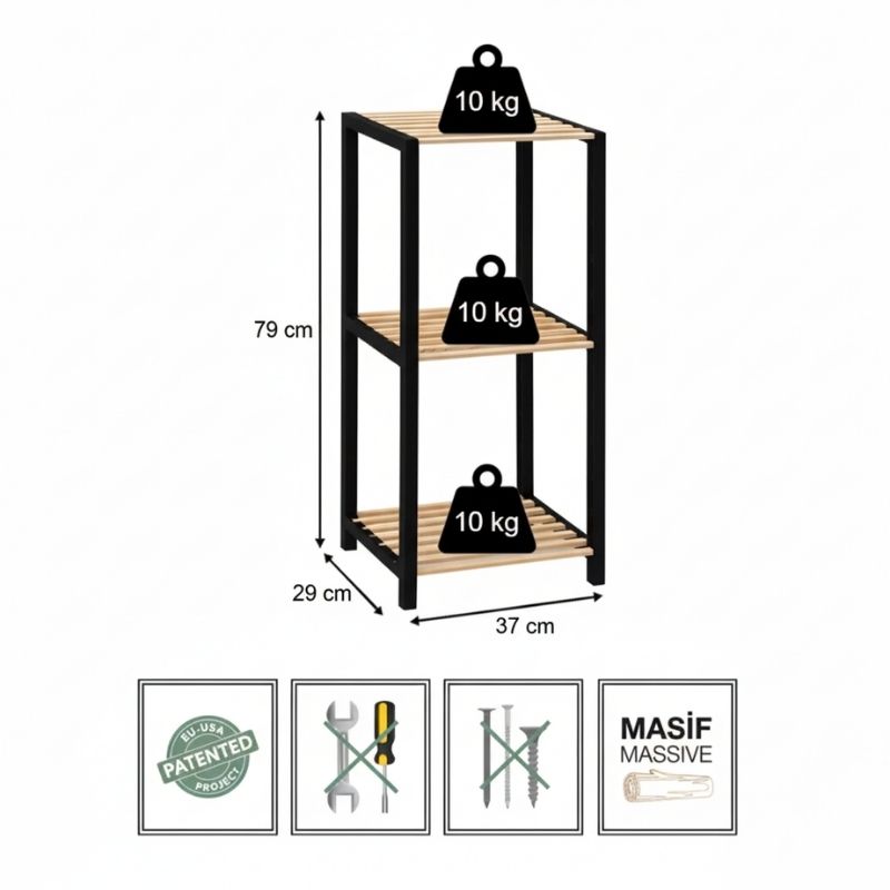Ραφιέρα δαπέδου - Κομοδίνο ξύλινο - πλαστικό χρώμα φυσικό - μαύρο 37x29x79εκ.