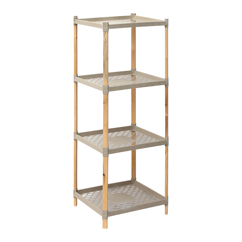Ραφιέρα δαπέδου πλαστική - ξύλινη χρώμα φυσικό - μπεζ 45x38x112εκ.