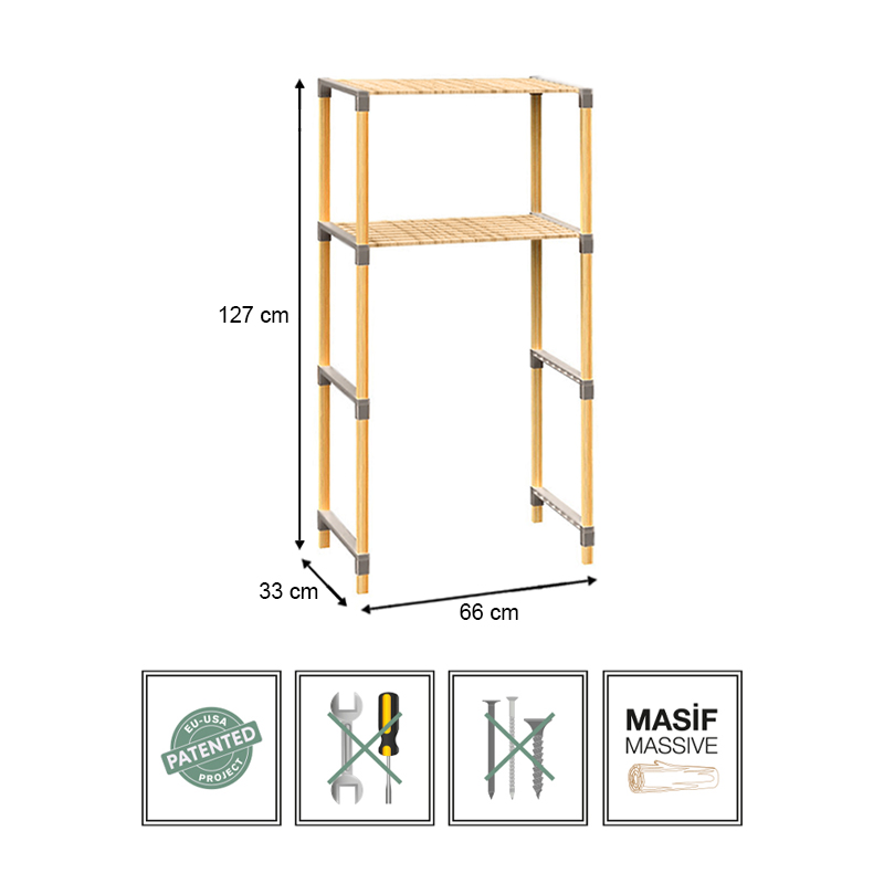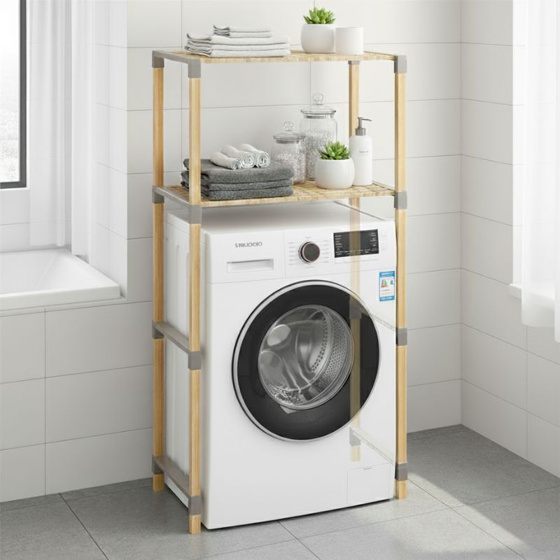 Έπιπλο πλυντηρίου ξύλινο - πλαστικό χρώμα φυσικό 66x33x127εκ.