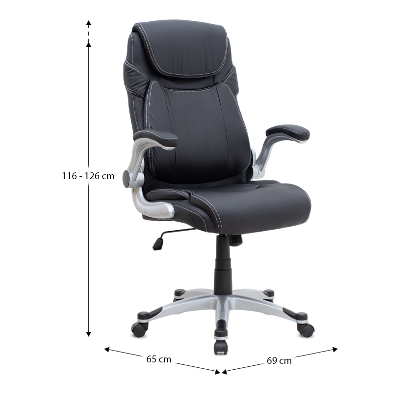Καρέκλα γραφείου διευθυντική Gustavo από τεχνόδερμα χρώμα μαύρο 69x65x116/126εκ.