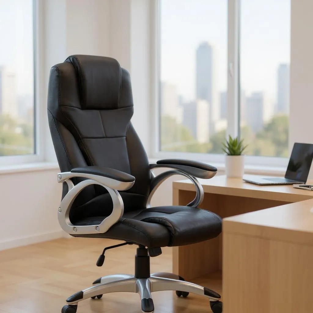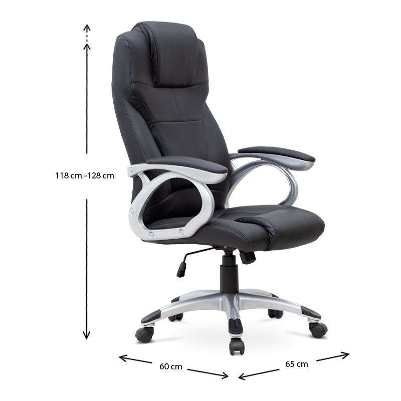 Καρέκλα γραφείου διευθυντική Luca από τεχνόδερμα χρώμα μαύρο 65x60x118/128εκ.