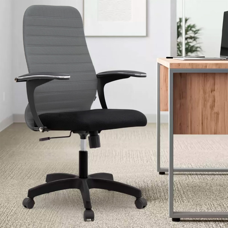 Καρέκλα γραφείου Melani με διπλό ύφασμα Mesh χρώμα γκρι - μαύρο 66,5x70x102/112εκ.