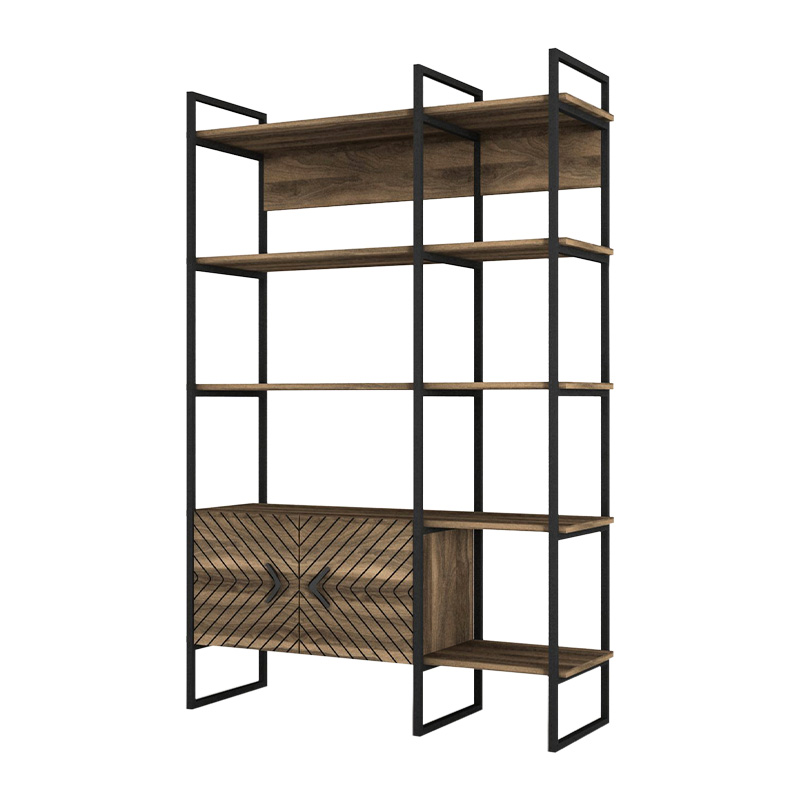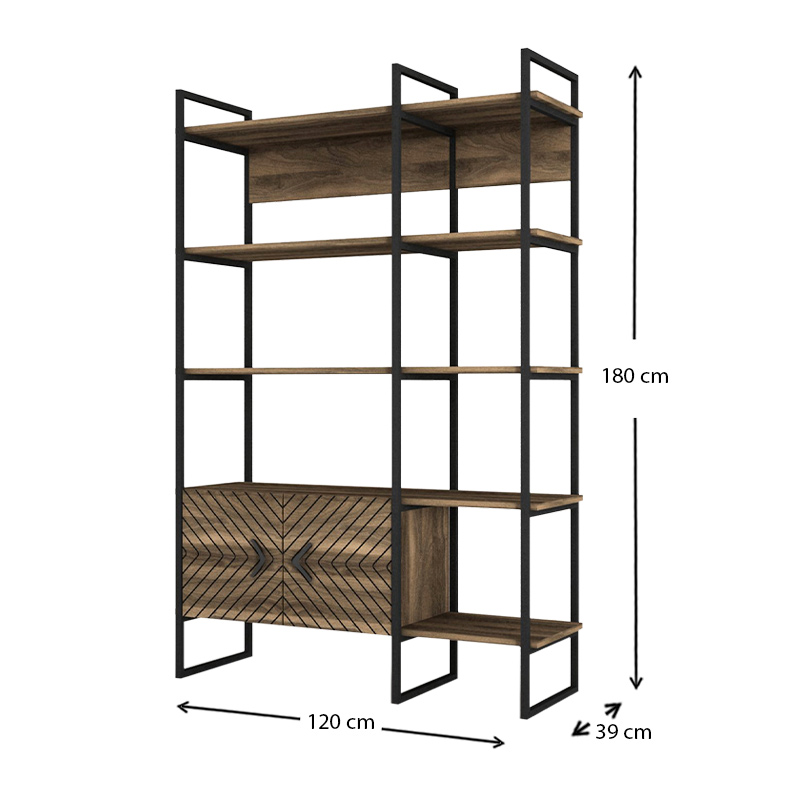 Βιβλιοθήκη Eduardo μεταλλική - μελαμίνης χρώμα καρυδί 120x39x180εκ.