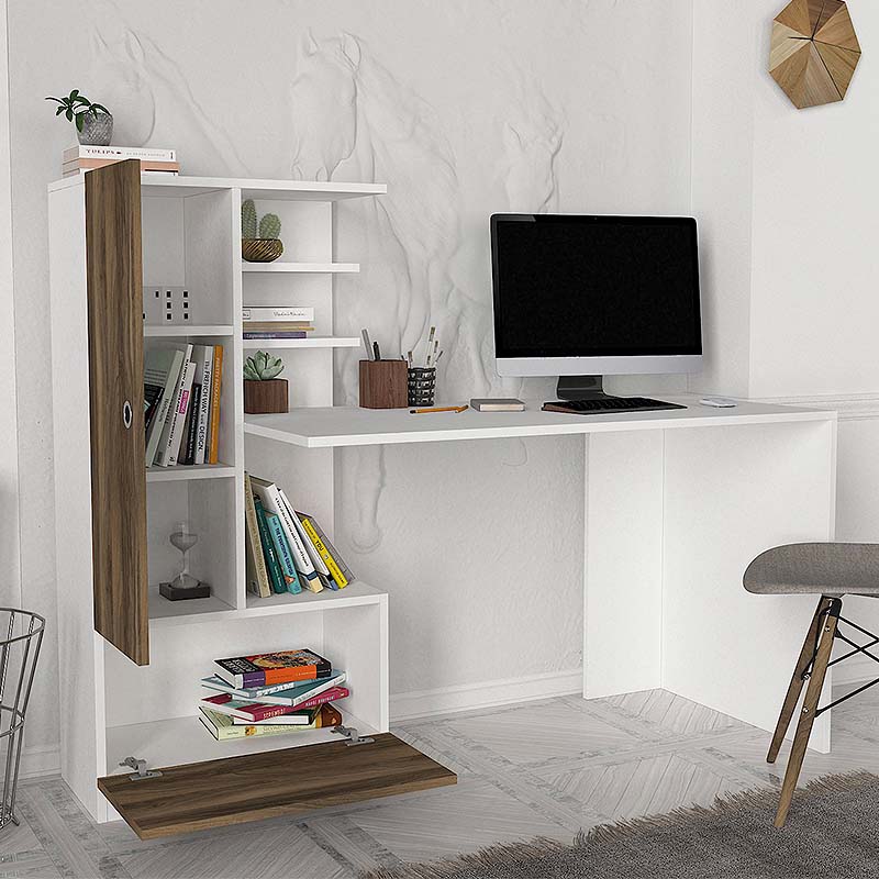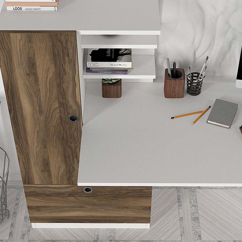 Γραφείο εργασίας Domingo χρώμα λευκό - καρυδί 149,5x60x120εκ.
