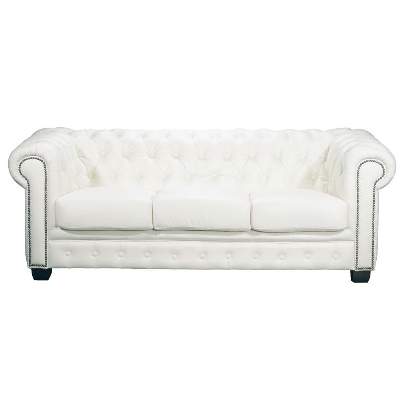 CHESTERFIELD Birmingham Καναπές 3Θέσιος Σαλονιού Καθιστικού, Δέρμα Άσπρο 201x92x74cm