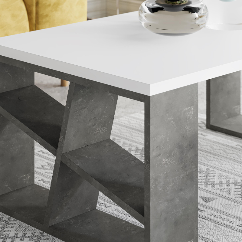 Τραπεζάκι σαλονιού Honey χρώμα γκρι ρετρό - λευκό 105x60x40εκ.