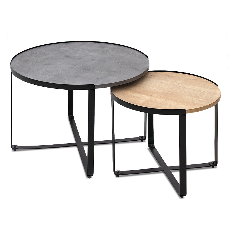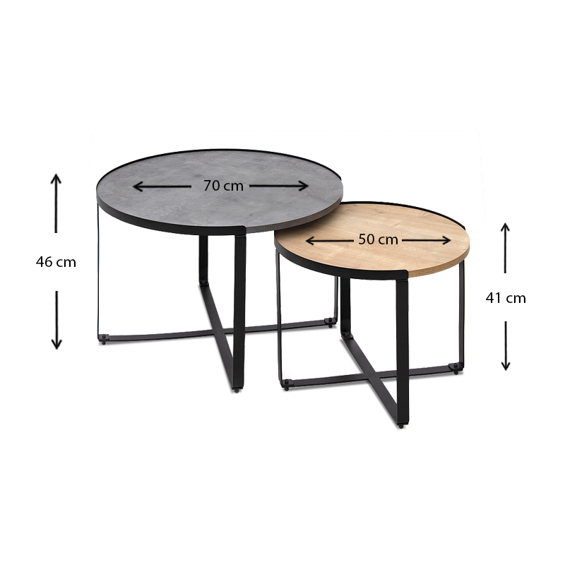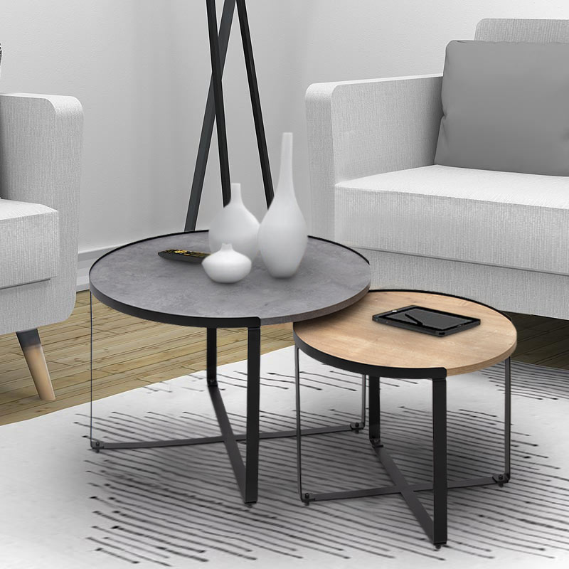 Σετ τραπεζάκια σαλονιού Davis 2τμχ. χρώμα γκρι σκυροδέματος/φυσικό οξιάς 70x69x46εκ.