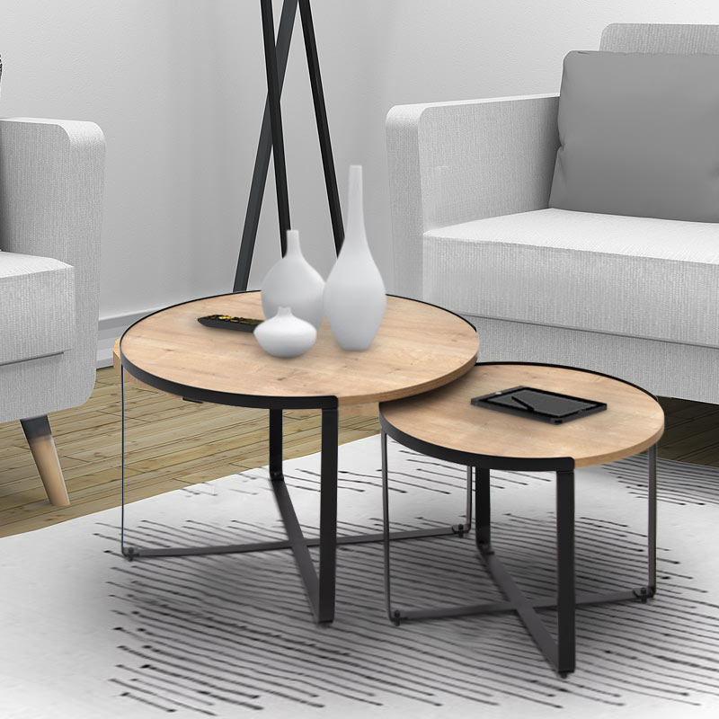 Σετ τραπεζάκια σαλονιού Davis 2τμχ. χρώμα φυσικό οξιάς 70x69x46εκ.