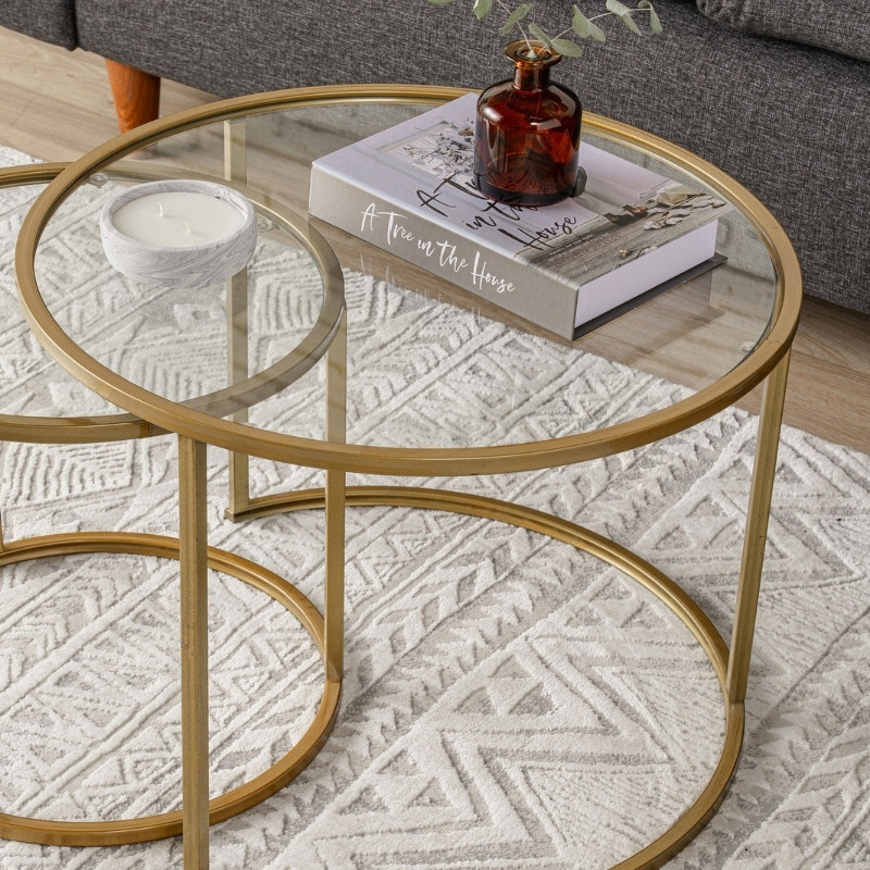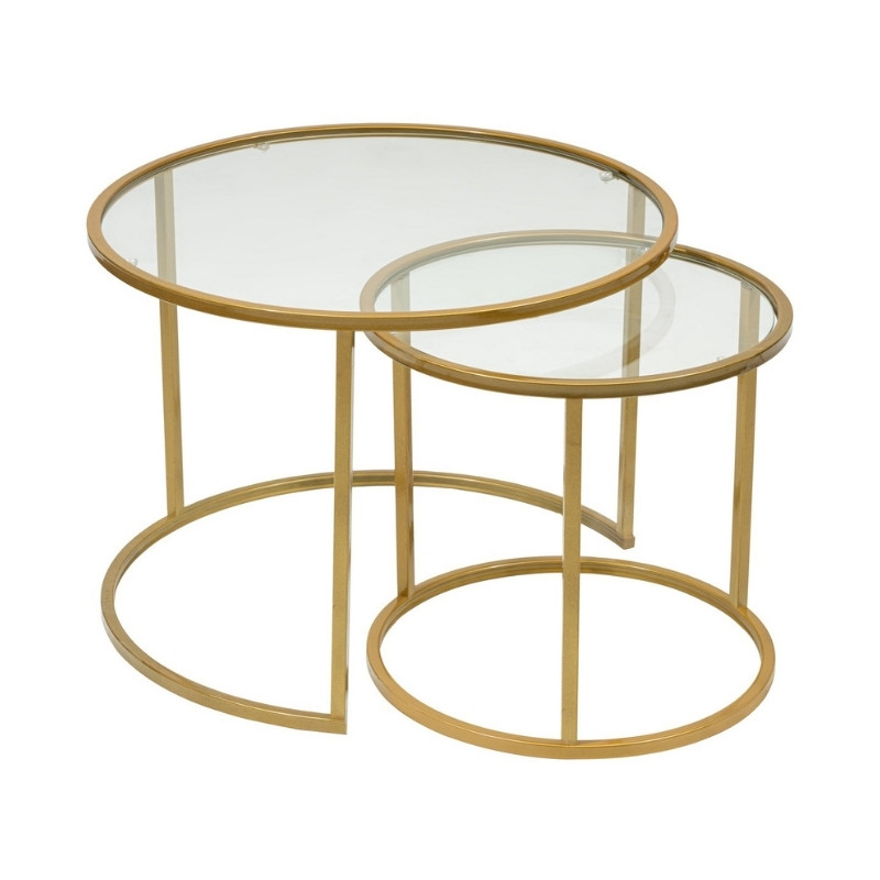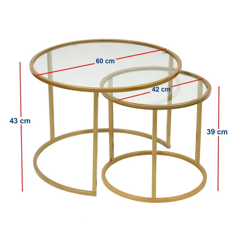 Τραπεζάκι σαλονιού σετ 2 τμχ Vetro μέταλλο - γυαλί χρώμα χρυσό Ø60x43εκ.