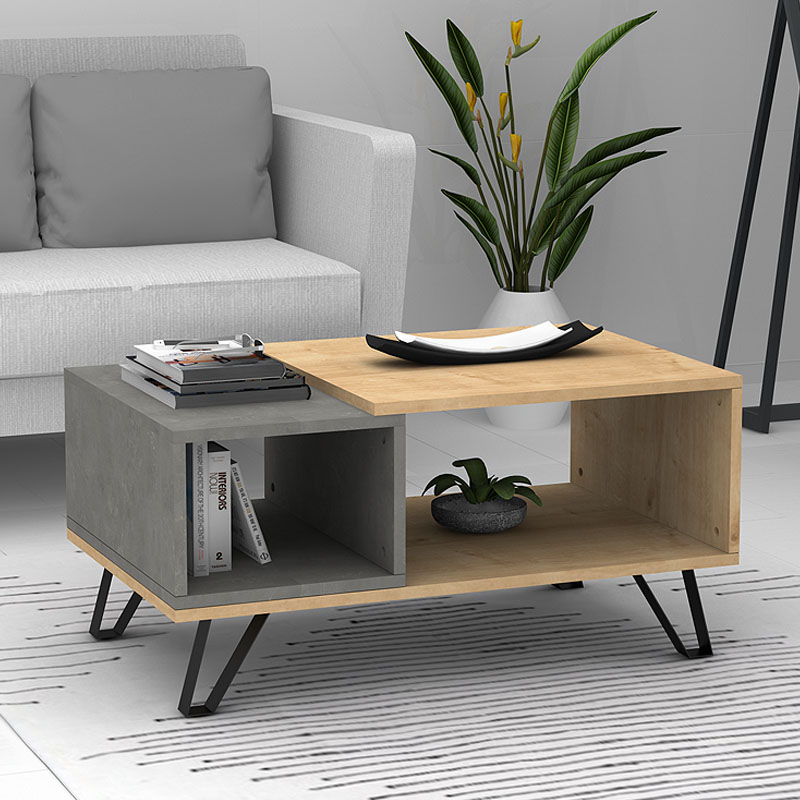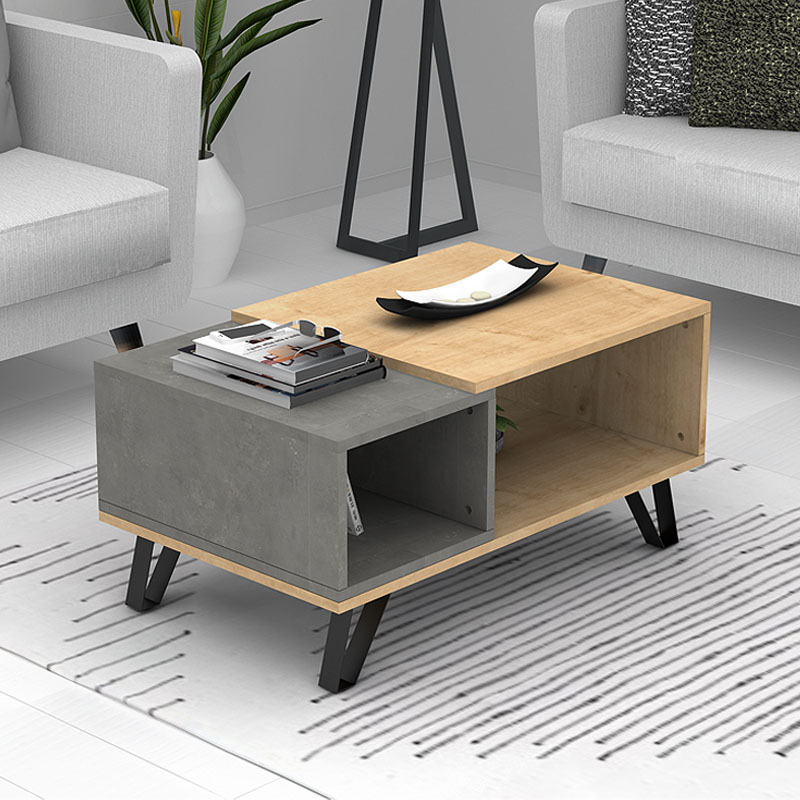 Τραπεζάκι σαλονιού Don χρώμα φυσικό οξιάς - γκρι σκυροδέματος 90x55x44εκ.