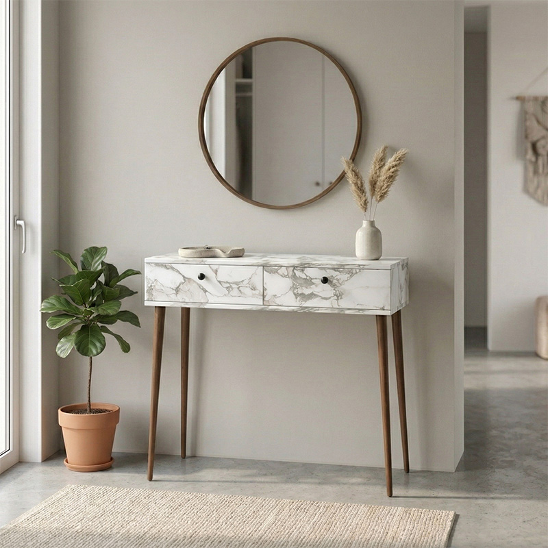 Κονσόλα Alis χρώμα λευκό εφέ μαρμάρου 110x29x88εκ.