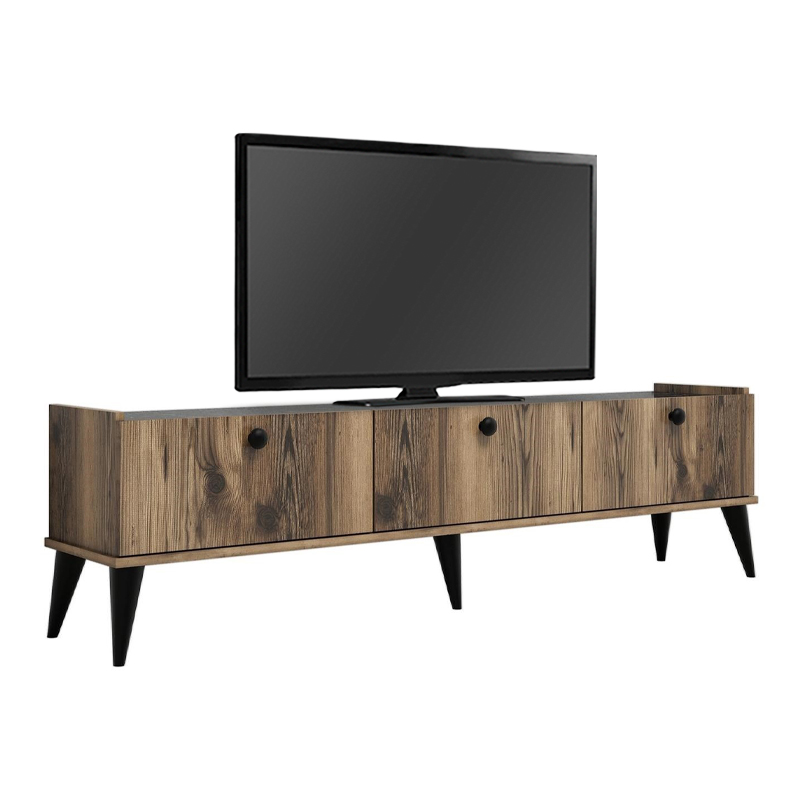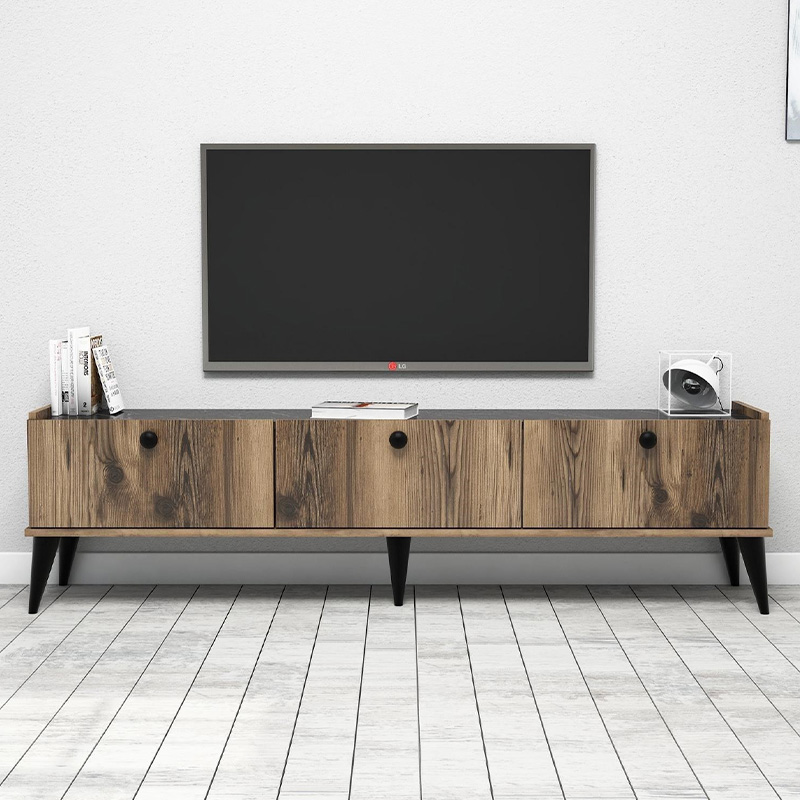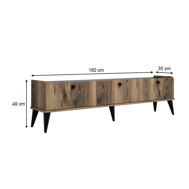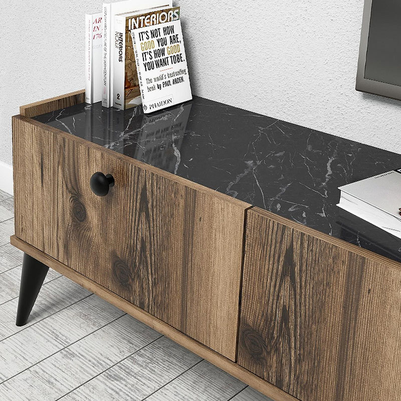 Έπιπλο τηλεόρασης Lidya χρώμα καρυδί - μαύρο εφέ μαρμάρου 180x35x49εκ.