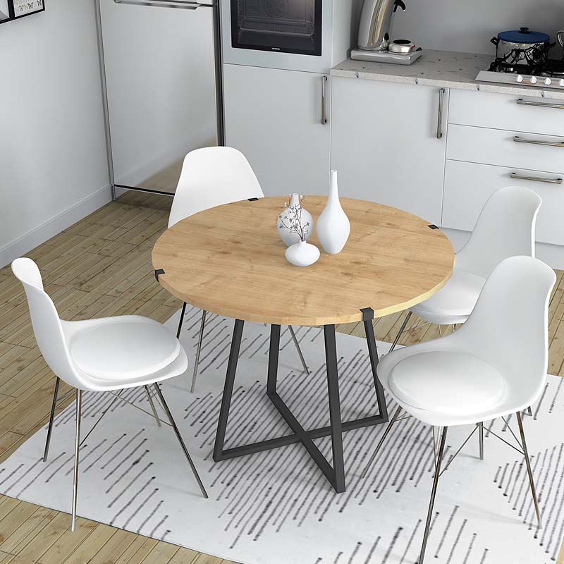 Τραπέζι Rubes χρώμα φυσικό οξιάς - ανθρακί 100x100x78εκ.