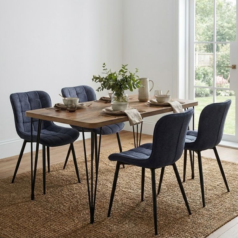 Σετ τραπεζαρία 5τμχ Roger - Chiara Mdf - ύφασμα χρώμα ακακίας - ανθρακί 120x70x75εκ.