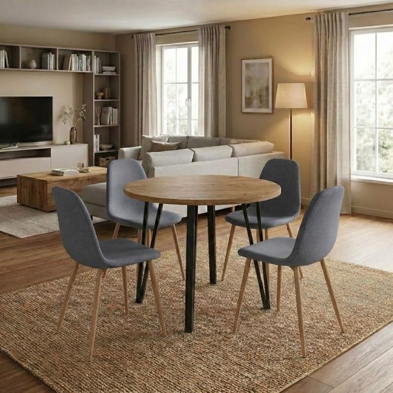 Σετ τραπεζαρία 5τμχ Xana - Iris χρώμα sepet oak - γκρι/φυσικό πόδι Ø90x77,5εκ.