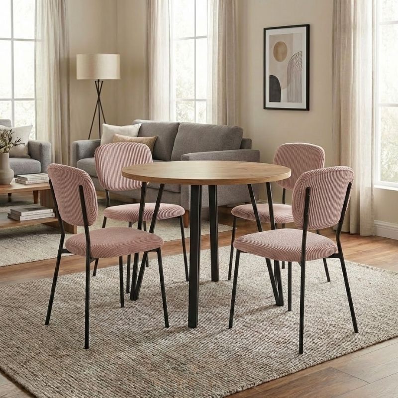 Η τραπεζαρία Xana - Kevin θα φέρει μία αίσθηση εκλεπτυσμένης κομψότητας στον χώρο σας. Το πλούσιο κοτλέ ύφασμα της καρέκλας χαρίζει ζεστασιά και υφή, ενώ τα μεταλλικά πόδια προσδίδουν μοντέρνο χαρακτήρα και σταθερότητα. Ιδανική επιλογή τόσο για το σπίτι όσο και για επαγγελματικούς χώρους που θέλουν να επικοινωνήσουν ποιότητα και design σε κάθε λεπτομέρεια.